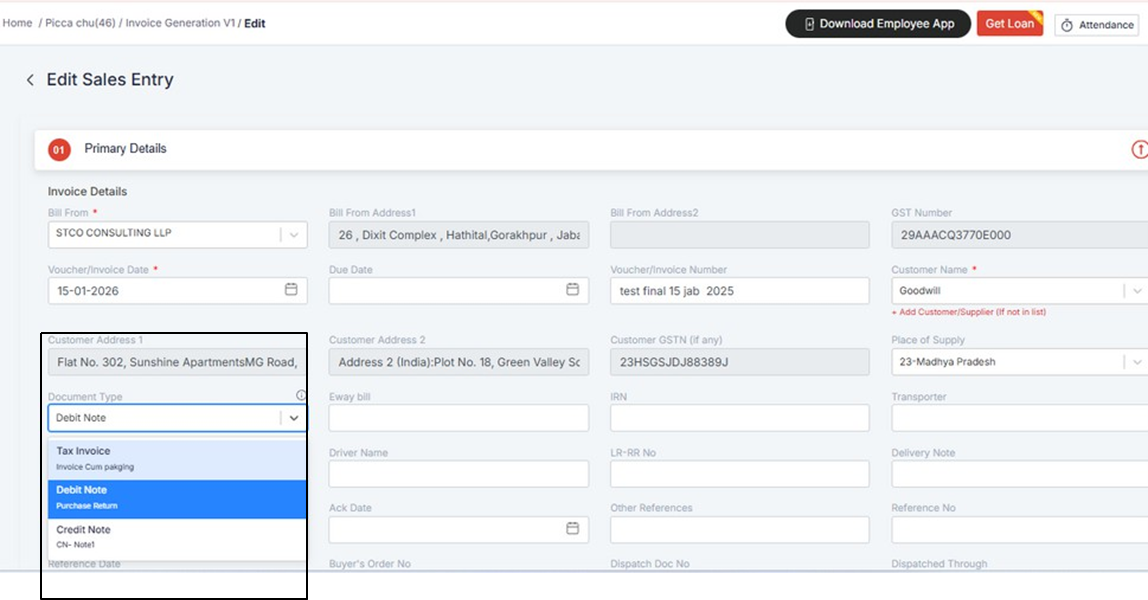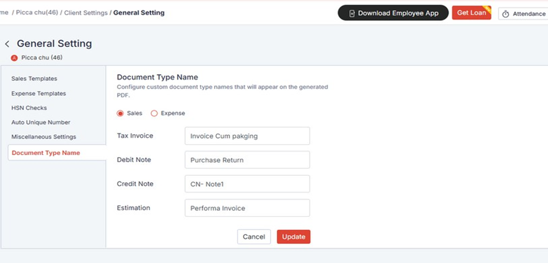 WHEN THE USER SELECTS A DOCUMENT TYPE AND GENERATES THE RESPECTIVE PDF, THE ALIAS NAME WILL BE DISPLAYED AS THE DOCUMENT HEADING IN THE PDF.