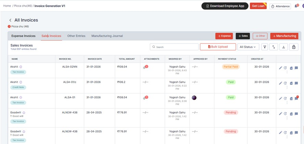 generated invoice as per the selected template